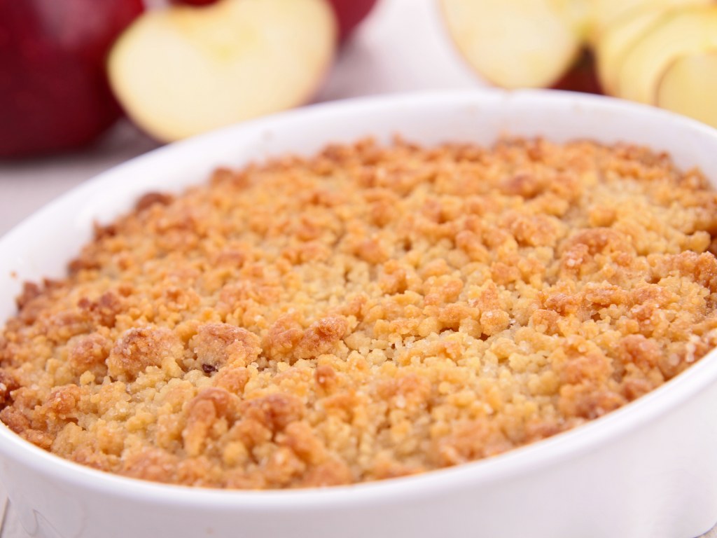 Servez le crumble aux pommes tiède.