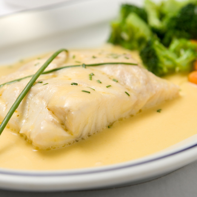 Préparez la liaison de la sauce en battant au fouet 3 jaune d’œufs, deux décilitres de crème fraîche et le jus de deux citrons. Ajoutez deux cuillères à café rases de maïzena ou de fécule, salez et poivrez.