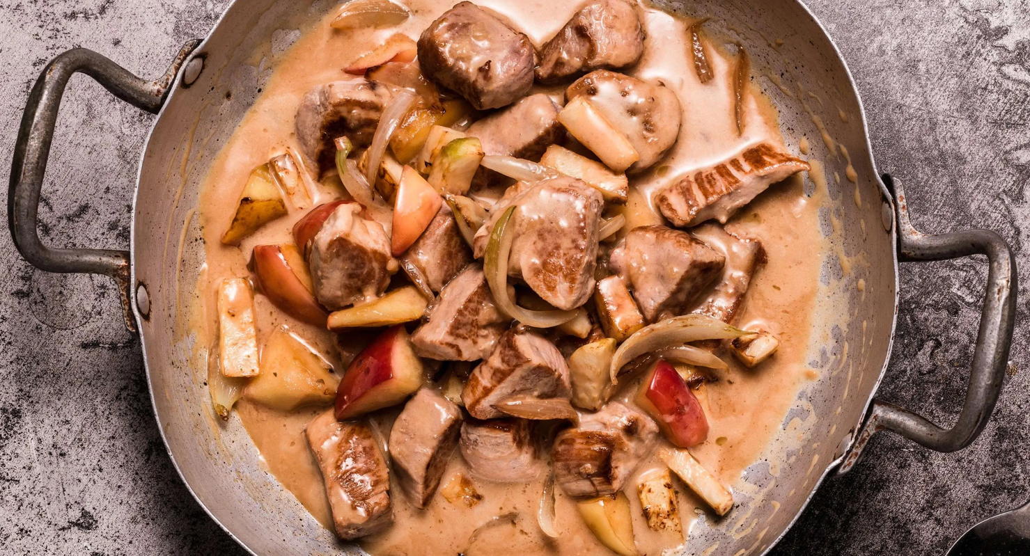 Ce ragoût est tendre et délicieusement parfumé. Il capture les arômes du céleri, des oignons, des pommes et du cidre pour offrir un vrai plaisir en bouche. Idéal avec des spätzli ou une purée de pommes de terre.