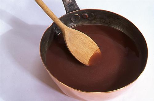 Saupoudrez de farine le fond de la casserole. Laissez-la blondir en remuant, puis ajoutez le vin et les tomates pelées, épépinées et coupées en dés. Laissez réduire de moitié puis incorporez le fond de veau. Portez à ébullition en remuant, ajoutez la fondue d'échalote et champignons. Hors du feu,