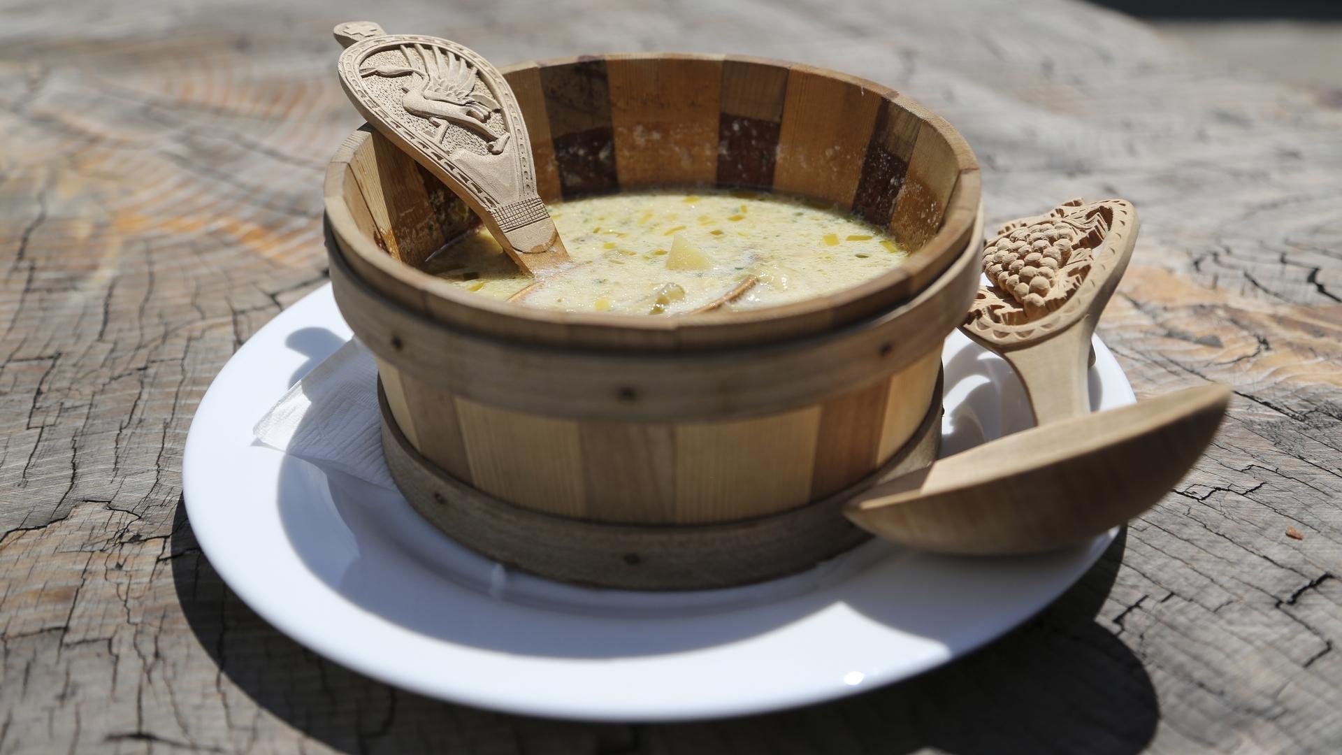 Même si on aime la déguster en hiver, la soupe de chalet est à l’origine un plat d’été que les armaillis dégustaient pendant leur saison à l’alpage. Aujourd’hui, les versions sont aussi nombreuses que les cuisiniers. Certains y ajoutent un morceau de lard ou de petit salé, d’autres des haricots secs ou des fèves. Dans ce cas, cuire les haricots à part et les ajouter aux légumes par la suite. Pour réaliser la soupe, on peut aussi cuire les légumes et les cornettes ensemble dans un mélange d’eau et de lait (à part égales). On ajoute les épinards et les orties en fin de cuisson. Quant au Gruyère, il est généralement taillé en copeaux et déposé au fond des assiettes avant d’être arrosé de soupe. Raoul Colliard préfère quant à lui le tailler en cubes afin d’en conserver un peu de mâche.